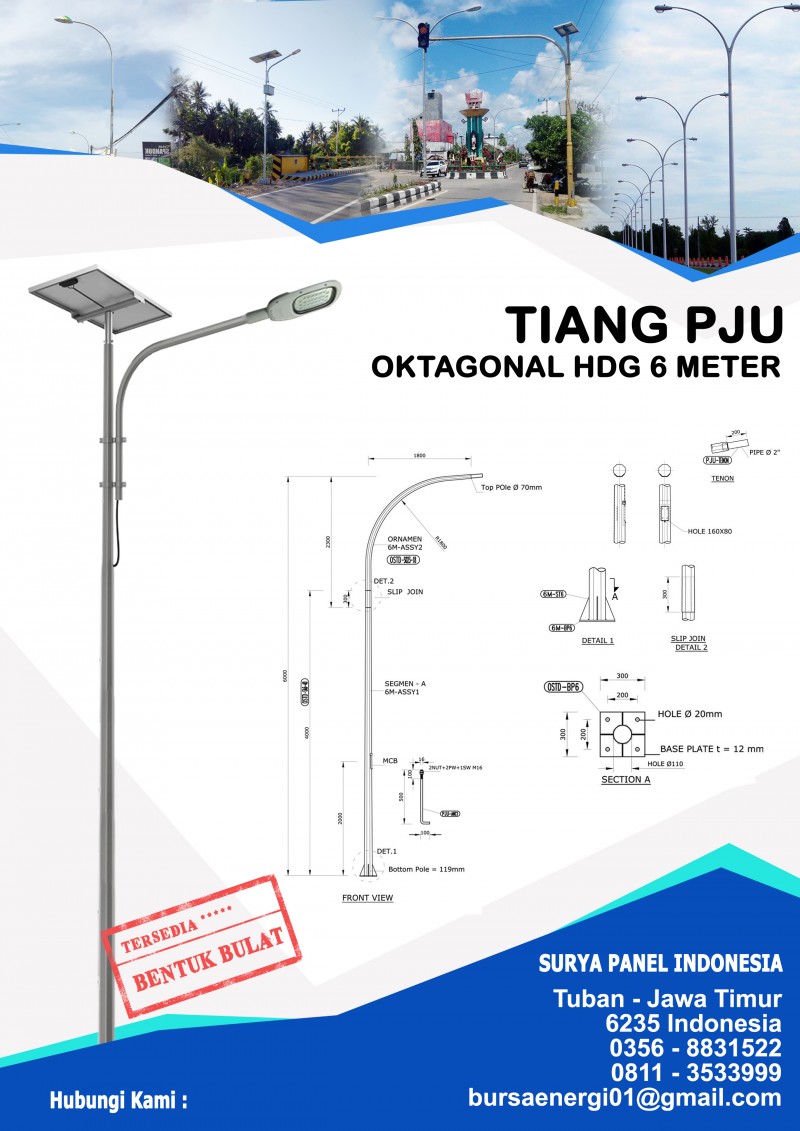 Pemerintah daerah ataupun kota saat ini sedang berlomba-lomba memperindah daerah mereka masing-masing. Tidak hanya untuk indah dilihat tapi untuk keamanan masyarakat juga tentunya. Salah satu alat atau instrumen yang digunakan untuk memperindah dan keamanan masyarakat yaitu Tiang PJU. Tiang PJU digunakan sebagai support lampu penerangan jalan pada fasilitas jalan umum, daerah perumahan, lokasi komersial dan industri. Tentunya penerangan jalan sangat penting sekali pada waktu malam hari. Karena area yang gelap bisa mengundang kejahatan datang seperti perampokan dll.